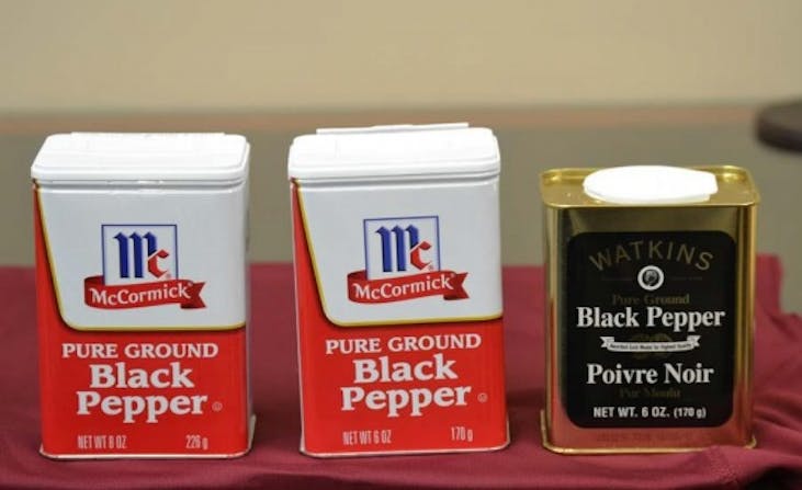 A smaller player in the spice industry, Watkins Inc., filed a lawsuit against McCormick last year, claiming that the latter had reduced the amount of pepper in its tins by 25% while still using the same size tin. The old McCormick tins contained about 8 ounces of ground pepper. After the switch, the tins now contain about 6 ounces of ground pepper.